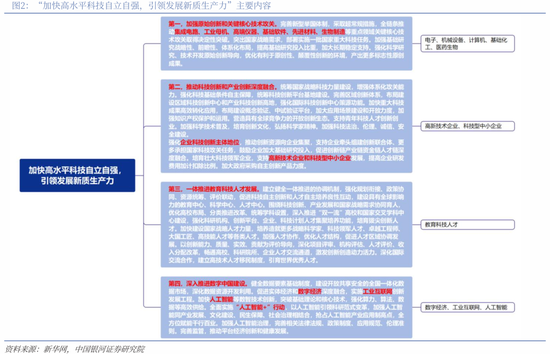 (2)加快高水平科技自立自强,引领发展新质生产力。加强原始创新和关键核心技术攻关,全链条推动集成电路、工业母机、高端仪器、基础软件、先进材料、生物制造等重点领域关键核心技术攻关取得决定性突破。推动科技创新和产业创新深度融合,一体推进教育科技人才发展,深入推进数字中国建设,全面实施“人工智能+”行动。利好的板块分别为:集成电路、工业母机、高端仪器与基础软件、先进材料与生物制造、人工智能(AI)全产业链、数字经济与信创。