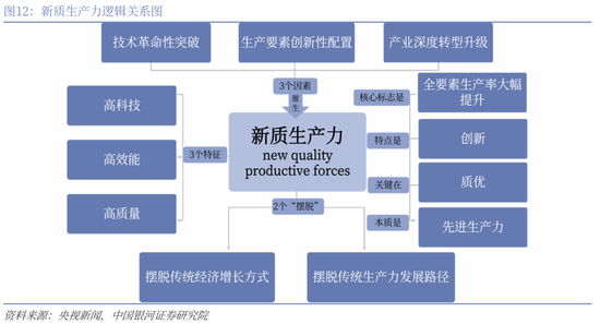 此前,2024年1月31日,习近平总书记在中共中央政治局集体学习时表示:“新质生产力是创新起主导作用,摆脱传统经济增长方式、生产力发展路径,具有高科技、高效能、高质量特征,符合新发展理念的先进生产力质态。它由技术革命性突破、生产要素创新性配置、产业深度转型升级而催生,以劳动者、劳动资料、劳动对象及其优化组合的跃升为基本内涵,以全要素生产率大幅提升为核心标志,特点是创新,关键在质优,本质是先进生产力。”因此,“新质生产力”中的“新”指创新,包括技术创新、生产要素配置创新、产业创新等;“质”体现在高质量发展;落脚在“生产力”,即强调劳动者、劳动资料、劳动对象及其优化组合的跃升,以及全要素生产率的提升。发展新质生产力,科技创新是核心驱动力。新质生产力可推动经济高质量发展,通过科技创新和产业升级,实现生产方式、产业结构的根本转变,从而促进社会生产效率的提升和经济的可持续发展。