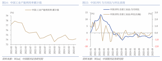 与有效需求不足对应的,是部分行业的产能过剩现状。过往一段时间的重复建设和无效扩张带来了资源的浪费,对我国经济结构的战略性调整与高质量发展构成挑战。在供需结构性矛盾下,截至2025年三季度的数据显示,GDP平减指数连续10个季度处于负增长状态;截至2025年9月,PPI同比也已连续36个月处于负值区间;我国工业产能利用率自2021年以来处于下滑区间,2025年前三季度为74.2%。这一矛盾也是“十五五”时期经济结构优化升级、实现高质量发展必须着力破解的关键课题。