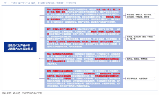 (1)建设现代化产业体系,巩固壮大实体经济根基。强调坚持“智能化、绿色化、融合化”方向,加快建设制造强国、质量强国、航天强国、交通强国、网络强国,保持制造业合理比重,构建以先进制造业为骨干的现代化产业体系。优化提升传统产业。推动重点产业提质升级,提升产业链自主可控水平;培育壮大新兴产业和未来产业,着力打造新兴支柱产业;促进服务业优质高效发展;构建现代化基础设施体系,适度超前建设新型基础设施,推进信息通信网络、全国一体化算力网、重大科技基础设施等建设和集约高效利用,推进传统基础设施更新和数智化改造。利好的板块分别为:工业母机与高端装备、国防军工、智能制造与工业互联网、汽车产业链、人工智能与数字经济、新能源与新材料、生物科技、信息技术与AI基础设施、绿色制造与环保、交通运输与物流等。